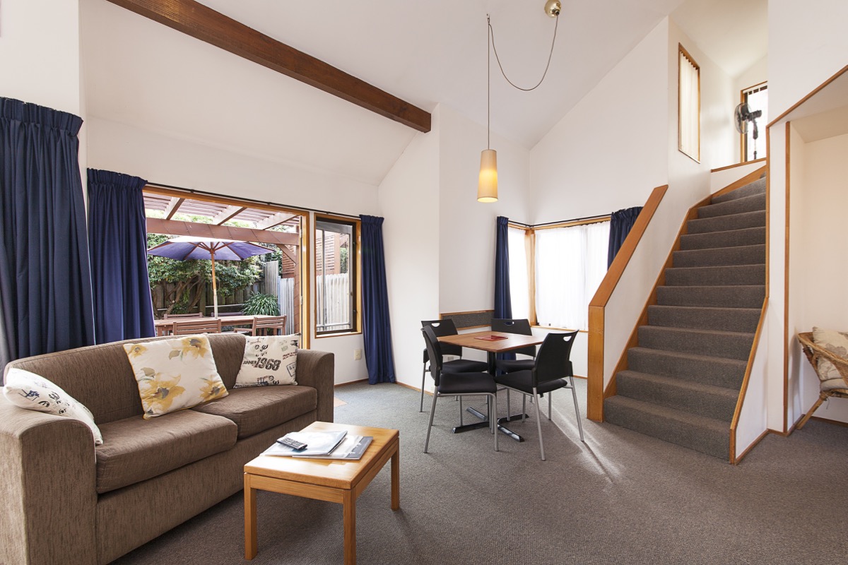Enjoy the comfort and convenience of our spacious family and group accommodation in Taupō. Our Large Family Units feature an open plan with a mezzanine and a downstairs lounge that opens onto its own garden courtyard. Relax and unwind with easy access to everything that Taupō has to offer.